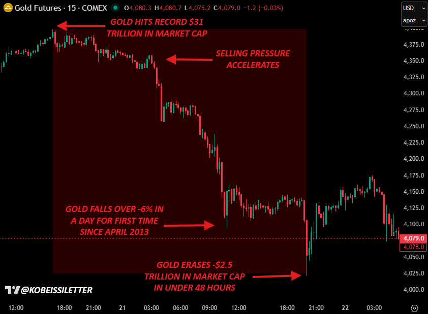 - And then? Boom. October 22 delivered a gut punch. What we saw was the biggest single-day plunge in gold in over a decade. Gold eventually fell to around $4,080.