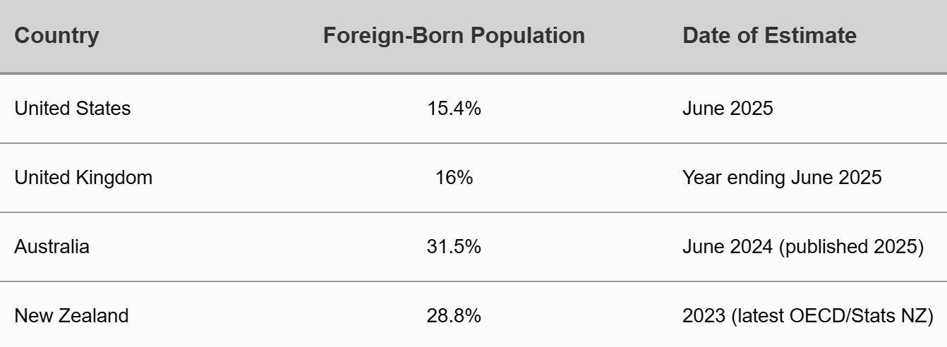 - Here in New Zealand, well over a quarter of our population is foreign-born. Occasionally, this has become a cause for friction, especially when it comes to competing ideologies.