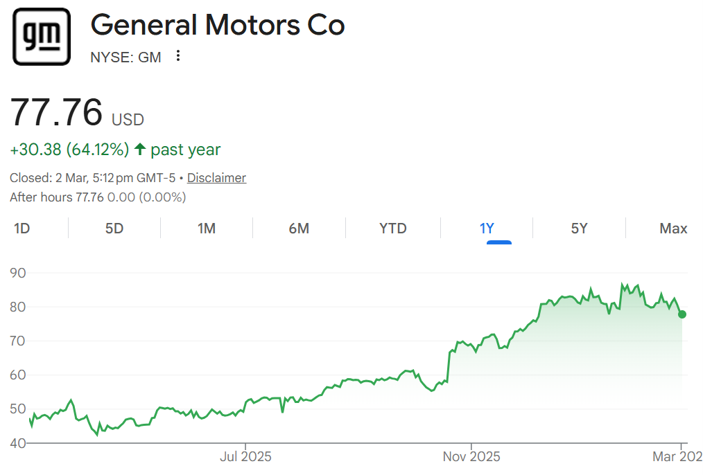 Today, the market sees growth for this business. It trades on a P/E of around 26 and a forward P/E around 6 — suggesting continued strong growth over the next 12 months. For a legacy US automaker!