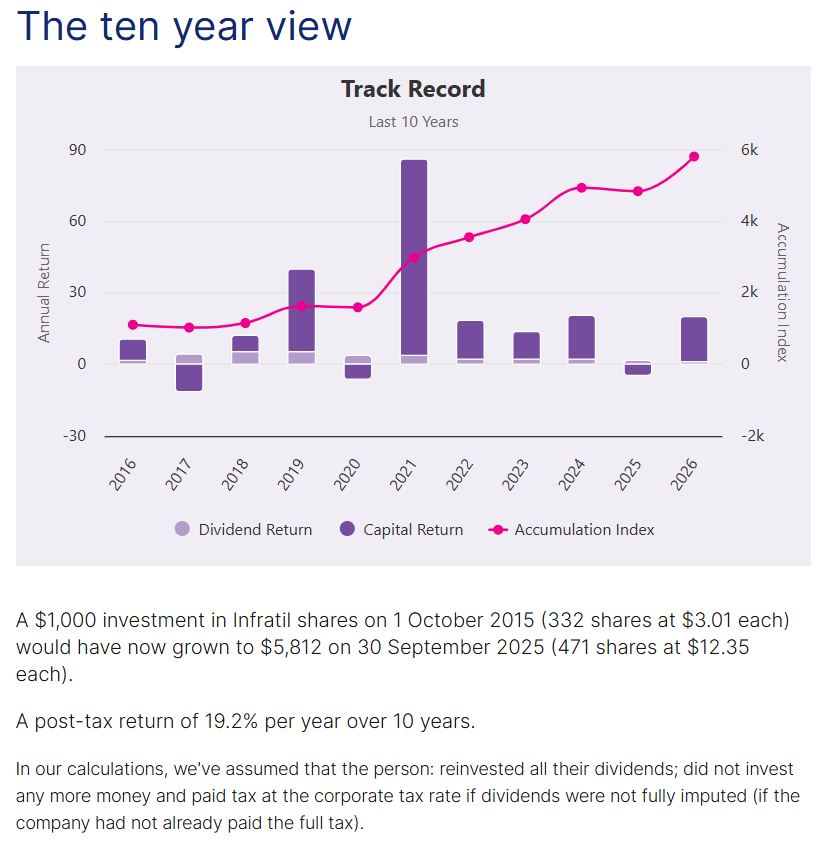 These days, Infratil states: ‘We aim to deliver long-term shareholder returns of 11–15% per annum after tax, through a mix of share price increase and dividend returns.’